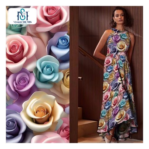 हॉट सेल स्यूब हैवीयन-कपड़े-थोक रेशम वस्त्र 100% रोई फूल पैटर्न मुद्रित कपड़े